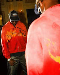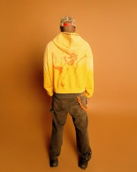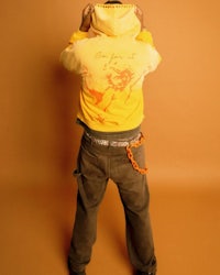 A collection burnt into the universe. Hoodies that look like they’ve caught the sunrise in the fabric, reds that scream ambition, blacks that ground the chaos, yellows that refuse to fade. These clothes talk in symbols.